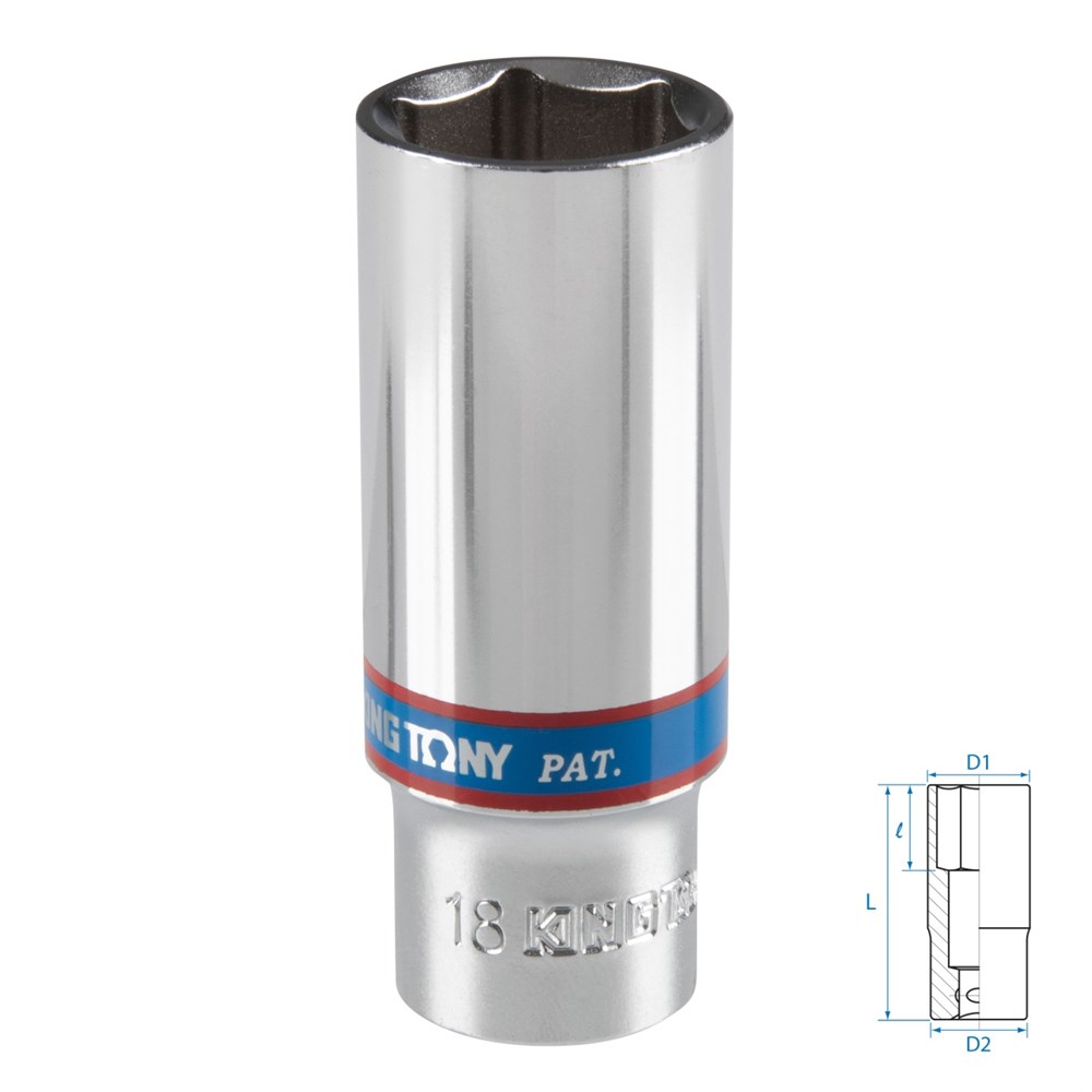 Головка торцевая глубокая шестигранная 3/8", 18 мм KING TONY 323518M TONY