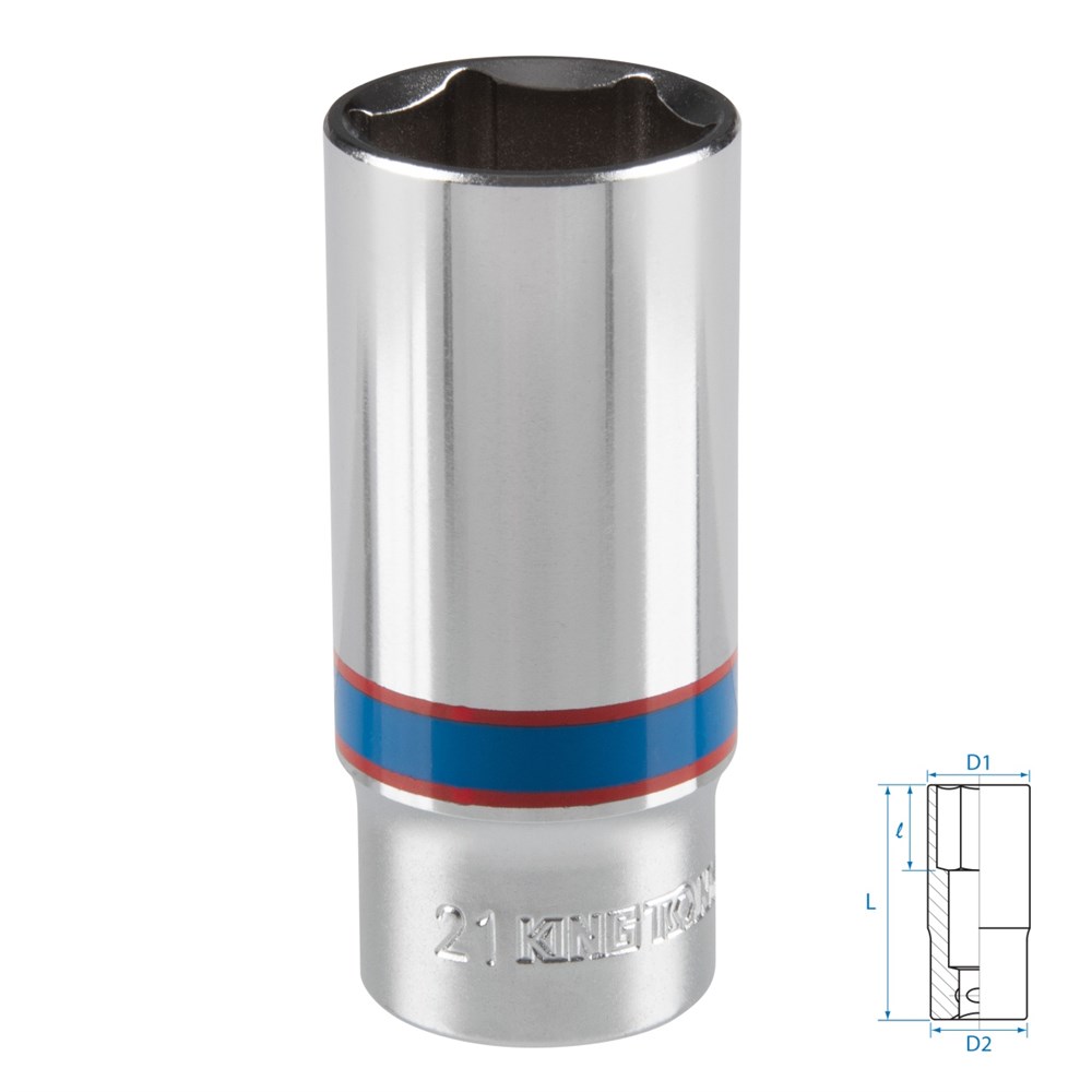 Технические характеристики Размер – 21 мм Посадочный квадрат – 3/8" Рабочий профиль – 6-гранный Рабочий диаметр (D1) – 27,8 мм Диаметр в основании (D2) – 25,0 мм Рабочая глубина (l) – 20,0 мм Общая длина (L) – 63,0 мм Материалы – инструментальная сталь Cr-V, хром, LDPE (упаковочный пакет) Размеры – 63,0×27,8×27,8 мм Вес – 0,126 кг Страна-изготовитель – Тайвань