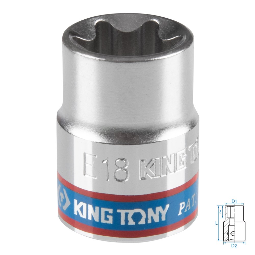 Головка торцевая TORX Е-стандарт 3/8", E18, L = 28 мм KING TONY 337518M Tony