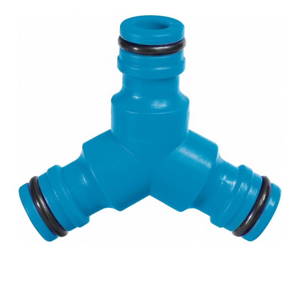 Тройник изготовлен из ударопрочной ABS-пластмассы, что обеспечивает его долговечность и устойчивость к повреждениям. Он совместим со шлангами различных диаметров и гарантирует качественное соединение без протечек, позволяя эффективно увеличивать область полива.