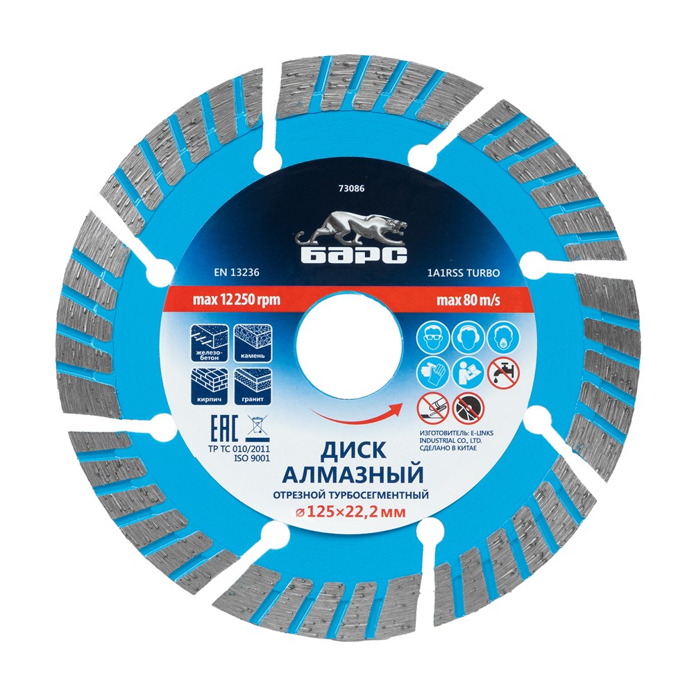 Диск алмазный, Турбо-сегментный 125 х 22.2 мм, сухая резка Барс 73086