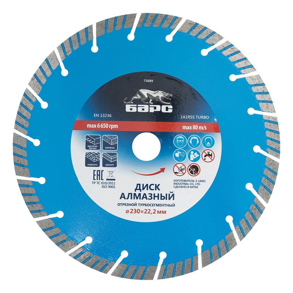Турбо-сегментный алмазный диск Барс 73089 — это надежный и высококачественный инструмент для профессионалов и любителей, которые ценят эффективность и долговечность своих инструментов. Подберите идеальный диск для своих нужд и получите отличные результаты в работе!