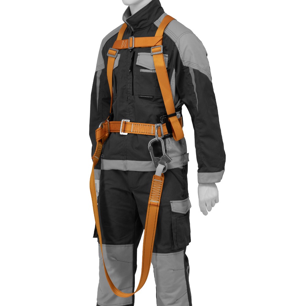 - Надежность: большой монтажный карабин и 2 металлических D-образных кольца на поясе, а также 1 кольцо на спине гарантированно удерживают пользователя.