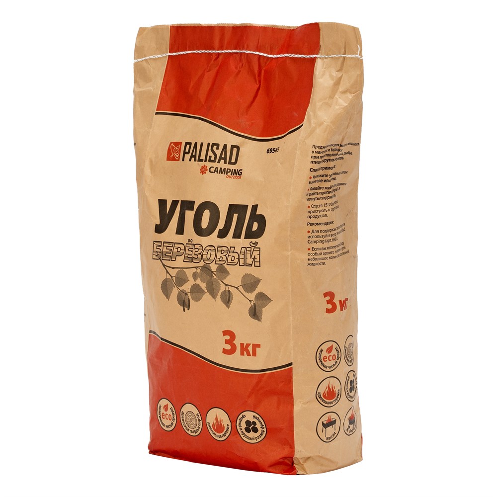 Березовый уголь Palisad Camping 69545 - это идеальный выбор для приготовления пищи на открытом воздухе. Объем упаковки составляет 3 кг, что делает его подходящим для использования с мангалами, грилями и барбекю. Пакета хватает для небольшой компании на даче или пикнике.