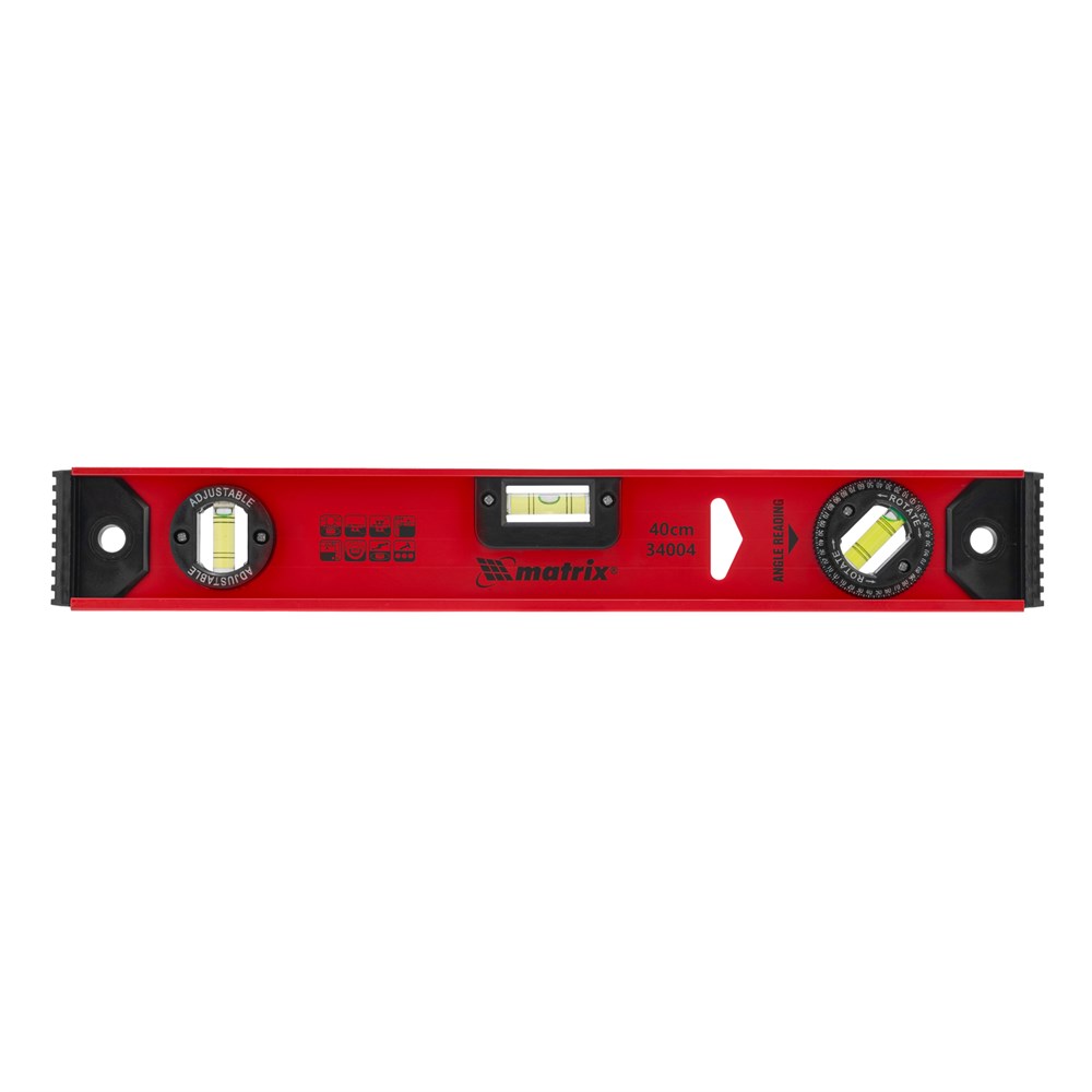 Уровень алюминиевый усиленный Matrix «Рельс» (артикул 34004) становится незаменимым инструментом для профессионалов в строительстве и ремонте. С длиной 400 мм и тремя глазками, он позволяет точно проверять отклонения как в горизонтальной, так и в вертикальной плоскостях. Поворотный глазок уровень позволяет выстраивать произвольный угол, что делает его идеальным для различных задач.