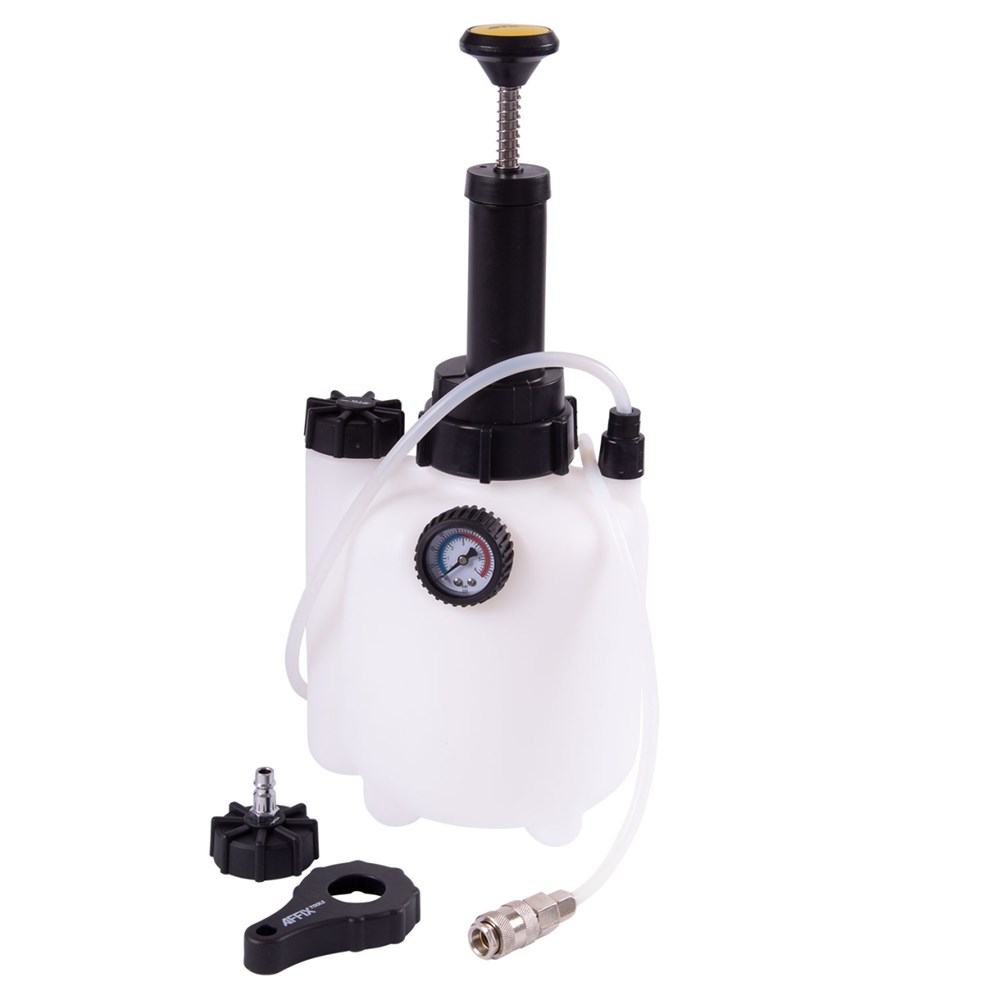 Устройство предназначено для замены тормозной жидкости методом нагнетания давления в бачок с тормозной жидкостью с помощью ручного насоса.