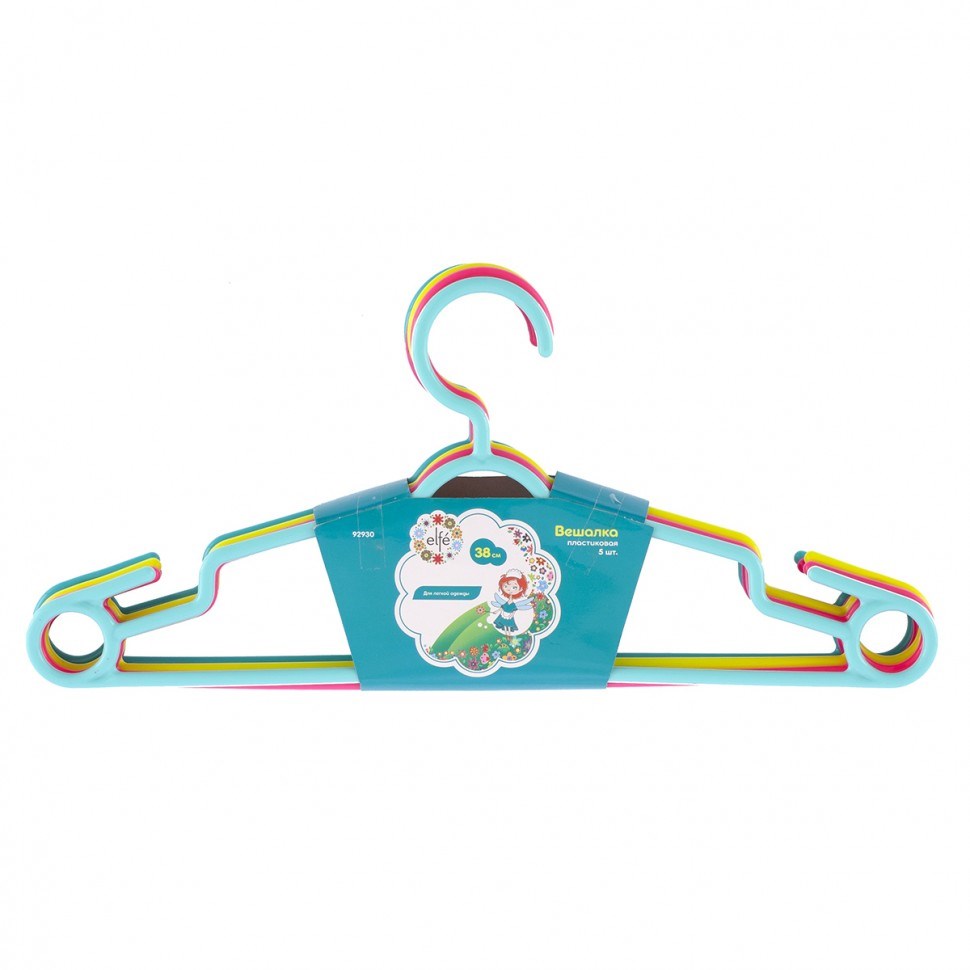 Вешалка пластиковая для легкой одежды 38 см, цветная, 5 шт, в комплекте Elfe