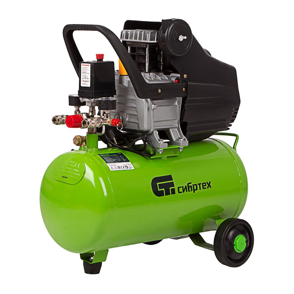 Компрессор воздушный КК-1500/24, 1.5 кВт, 198 л/мин, 24 л, прямой привод, масляный Сибртех 58037